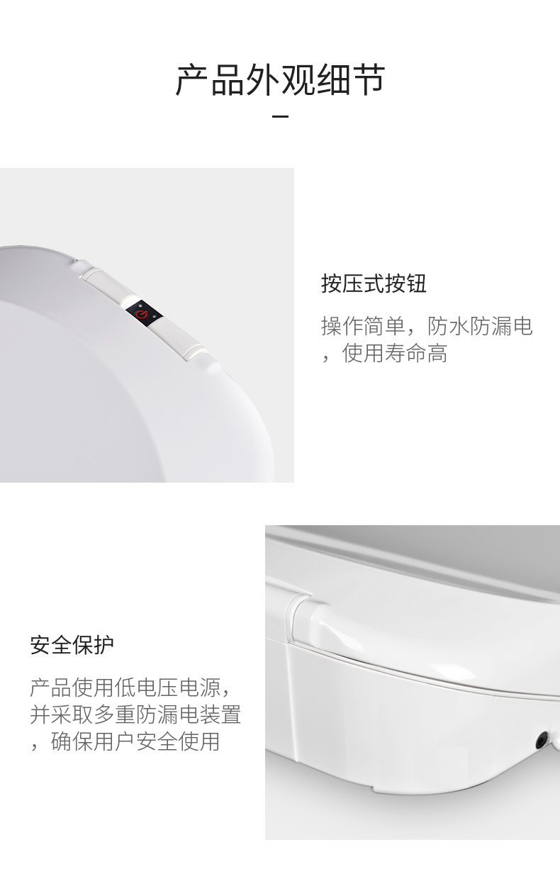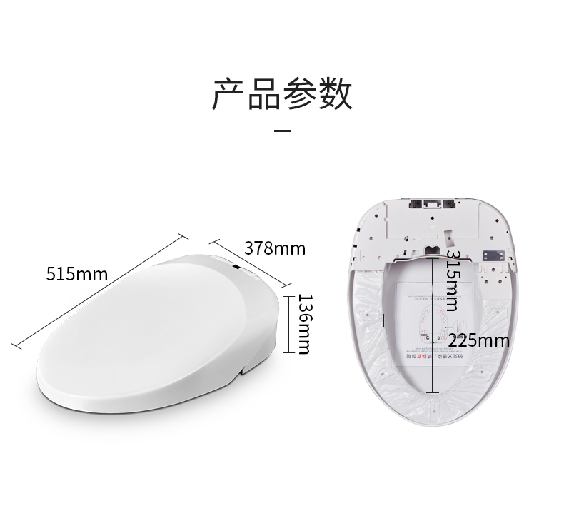 功能:自动换套,耐划伤静音缓降盖板,整体上翻舱盖,脲醛盖板,自动延时6秒,电机过载保护,多重防水防潮。